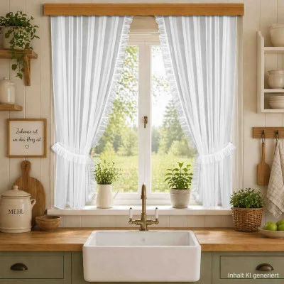 Landhausgardine, Übergardine, Vorhang-Set, Dekoschal
