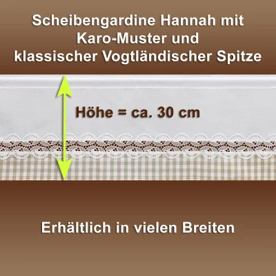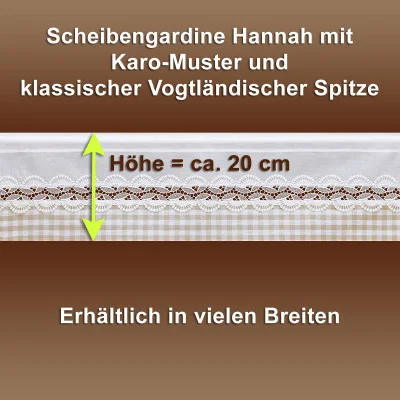 Bringen Sie mit der Feenhaus-Spitzengardine Hannah ein Stück echte Handwerkskunst in Ihr Zuhause. Diese exklusive Scheibengardine aus der Kollektion-Hannah vereint die filigrane Eleganz Vogtländischer Spitze mit dem rustikalen Charme eines beige-weiß karierten Baumwollstoffes. Das Ergebnis ist eine Fensterdeko, die nicht nur durch ihre Optik besticht, sondern auch ein Gefühl von Geborgenheit und Tradition vermittelt.