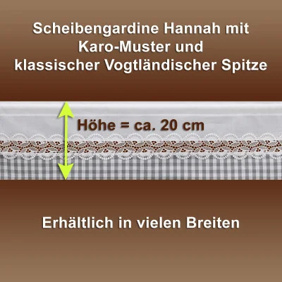 Verschönern Sie Ihr Heim mit der dezenten Feenhaus-Spitzengardine Hannah. Diese exklusive Scheibengardine aus der Kollektion-Hannah vereint die filigrane Eleganz Vogtländischer Spitze mit dem stilvollen Charme eines grau-weiß karierten Baumwollstoffes. Das Ergebnis ist eine Fensterdeko, die sich harmonisch in jedes moderne Ambiente fügt und dennoch echte Handwerkskunst ausstrahlt.