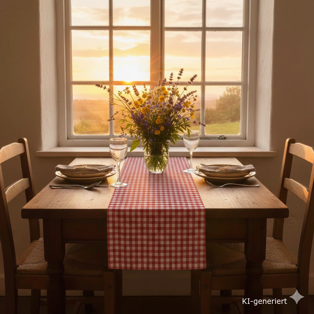 Verwandeln Sie Ihren Essbereich in eine Oase der Ruhe und Gastfreundlichkeit. Mit unserem Tischläufer Hannah im klassischen rot-weißen Karo-Muster setzen Sie auf ein Design, das niemals aus der Mode kommt. Ob beim gemütlichen Sonntagsfrühstück oder dem festlichen Abendessen – dieser Läufer unterstreicht Ihre Liebe zur Esskultur und schafft im Handumdrehen ein einladendes Ambiente.
