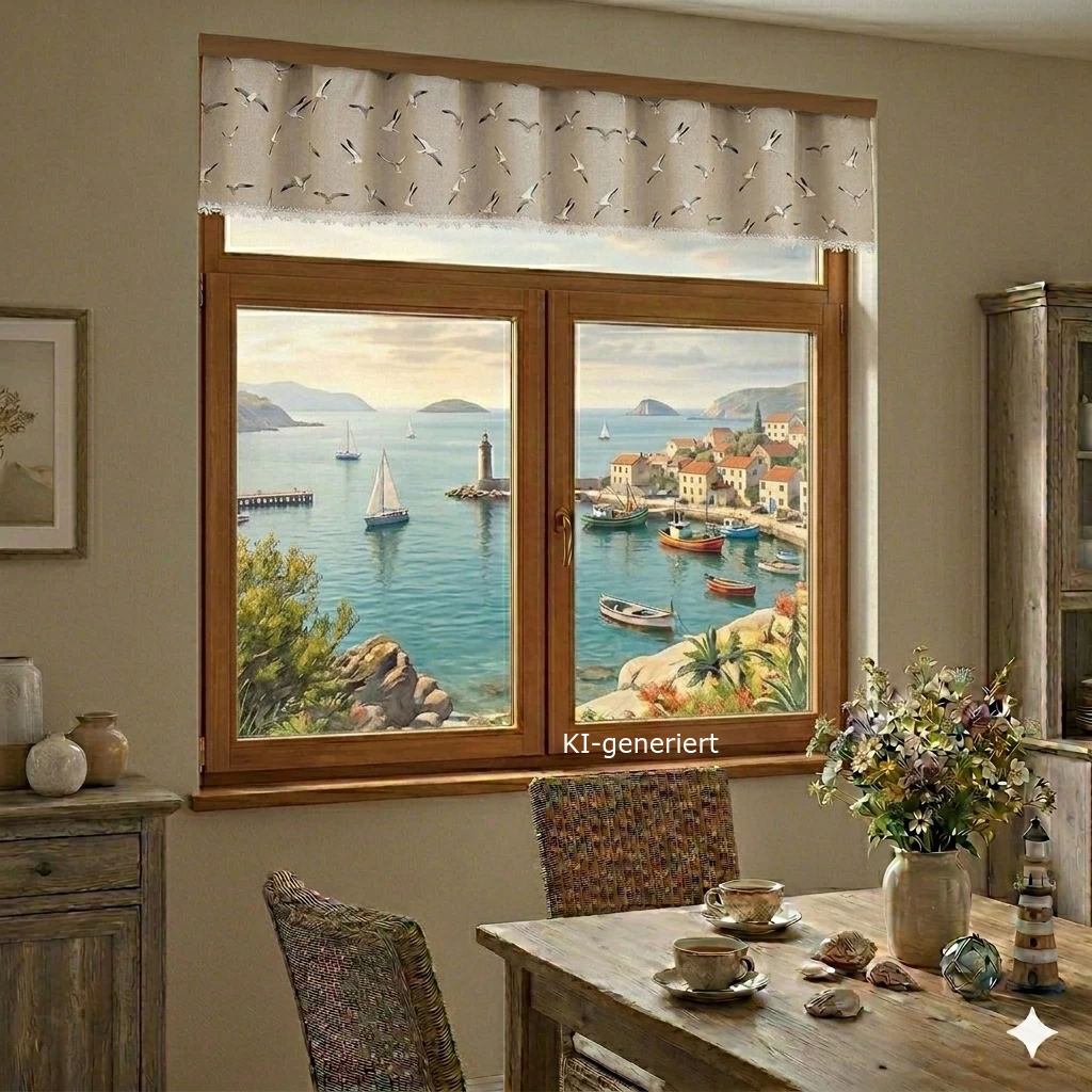 Maritime Eleganz für Ihre Fenster: Querbehang Ilma Möwe mit Plauener Spitze