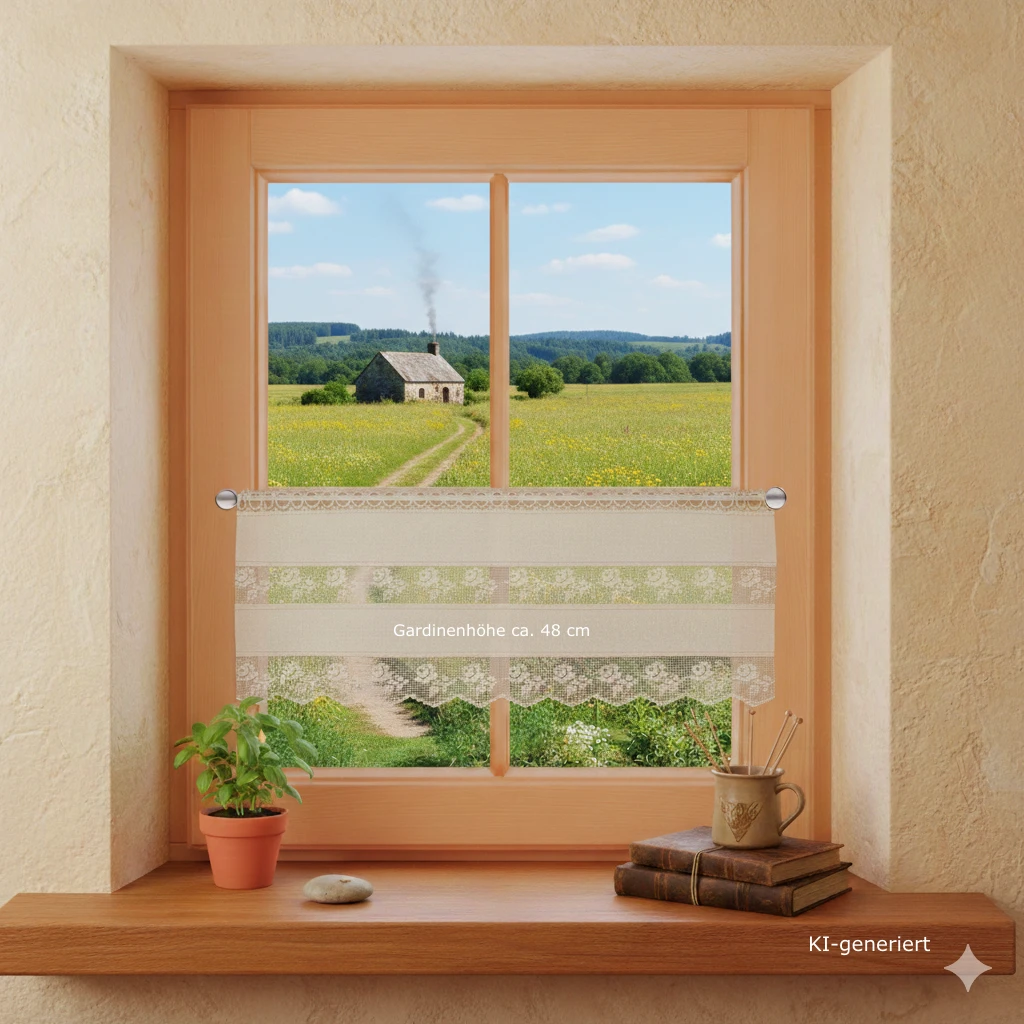 Die naturfarbene Scheibengardine Lina ist die ideale Wahl für Hausbesitzer und Wohnungseigentümer, die Wert auf authentische Materialien und handwerkliche Perfektion legen. Auch für das Gastgewerbe, wie Pensionen oder gemütliche Gaststuben, bietet sie eine stilvolle Möglichkeit, Fenster einladend zu dekorieren. Als hochwertiges Präsent für Geschenkkäufer mit Sinn für Tradition bleibt dieses Produkt über Jahre hinweg ein geschätzter Teil der Einrichtung.
